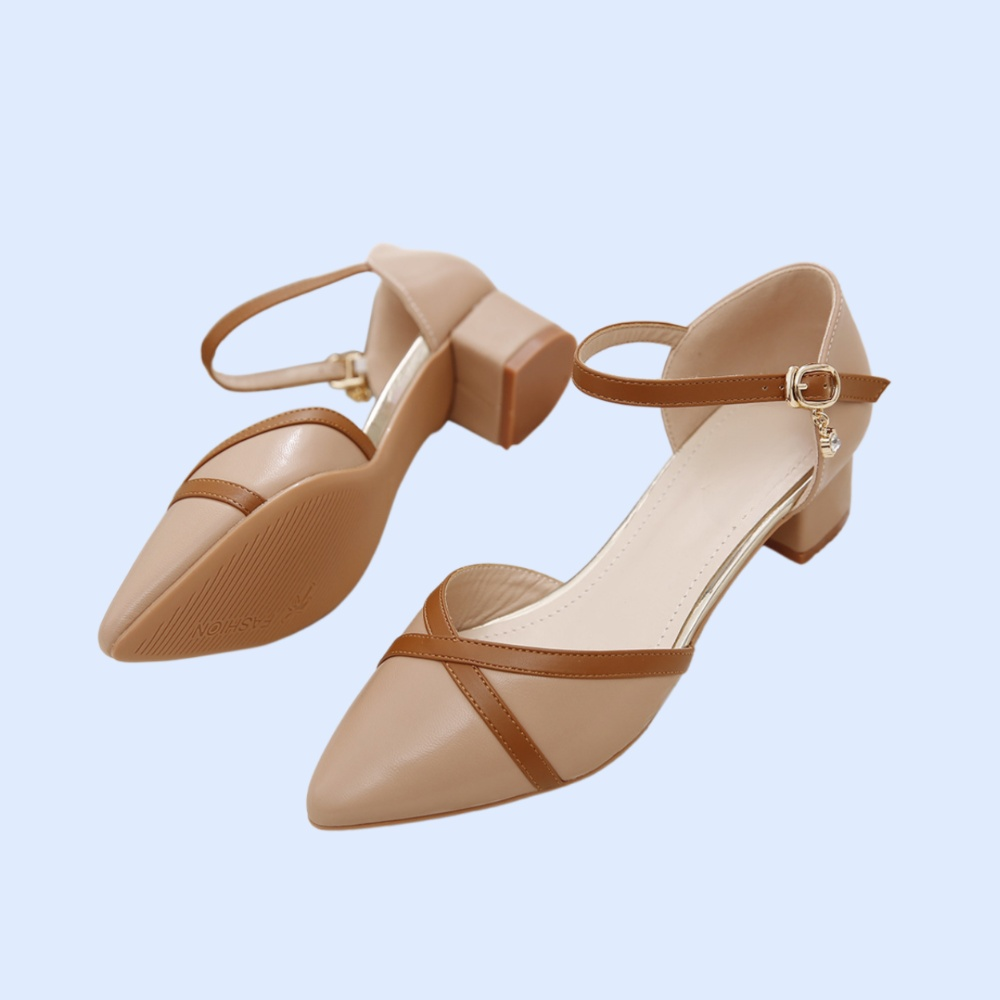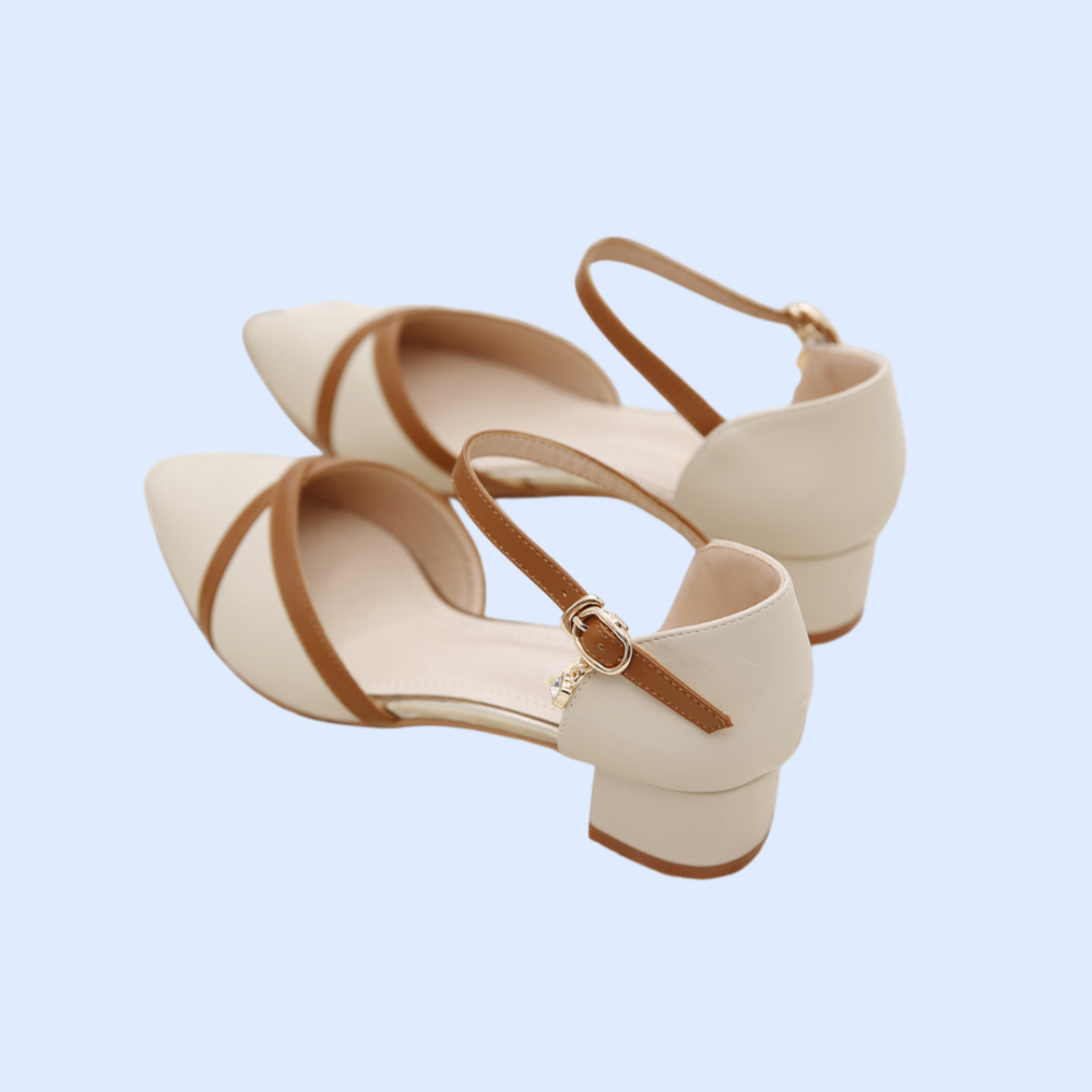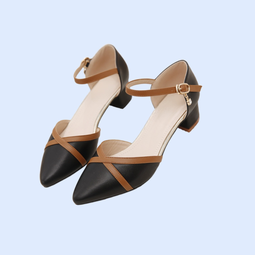 洗練されたポインテッドトゥデザインと調整可能なバックル付き。安定感のあるヒールで歩きやすく、通勤やお出かけに最適。